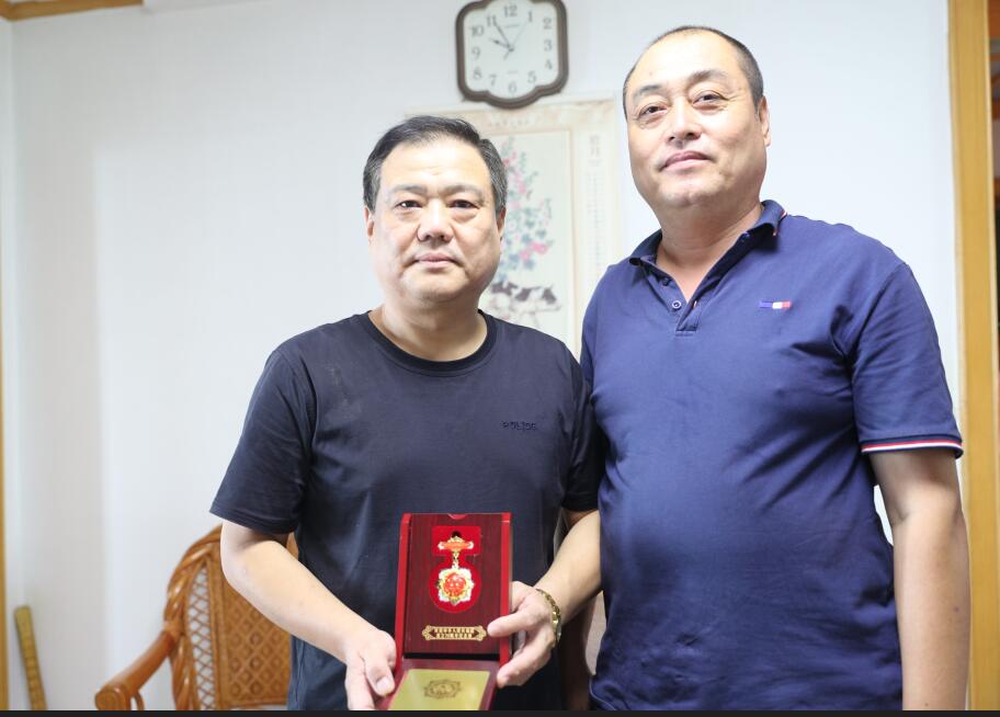 9月23日上午,青島安裝建設(shè)股份有限公司紀(jì)委書記、工會(huì)主席李金通與相關(guān)同志帶著上級(jí)領(lǐng)導(dǎo)部門和公司領(lǐng)導(dǎo)的重托,將這枚閃耀著光輝象征與最高榮譽(yù)的獎(jiǎng)?wù)滤偷搅艘娮C共和國(guó)誕生和發(fā)展奇跡并為之做出突出貢獻(xiàn)的全國(guó)勞模賀再奎及家人手中。感謝他為祖國(guó)和人民的無(wú)私奉獻(xiàn),更感謝他為青島安裝公司帶來(lái)的無(wú)尚榮耀。